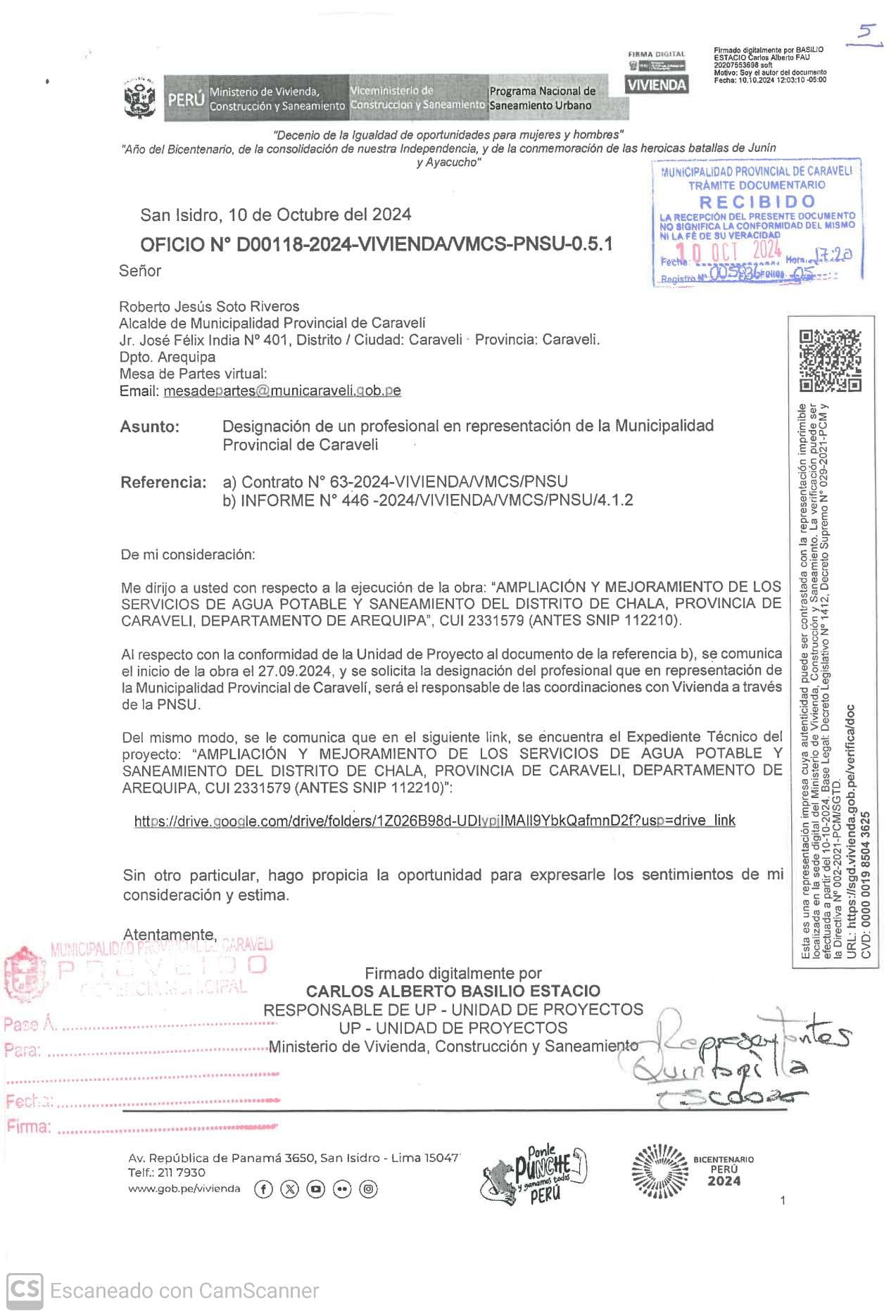 Alcalde provincial Roberto Soto Riveros, sigue a paso firme con documentos y gestión para hacer realidad proyecto añorado por nuestro distrito de Chala.