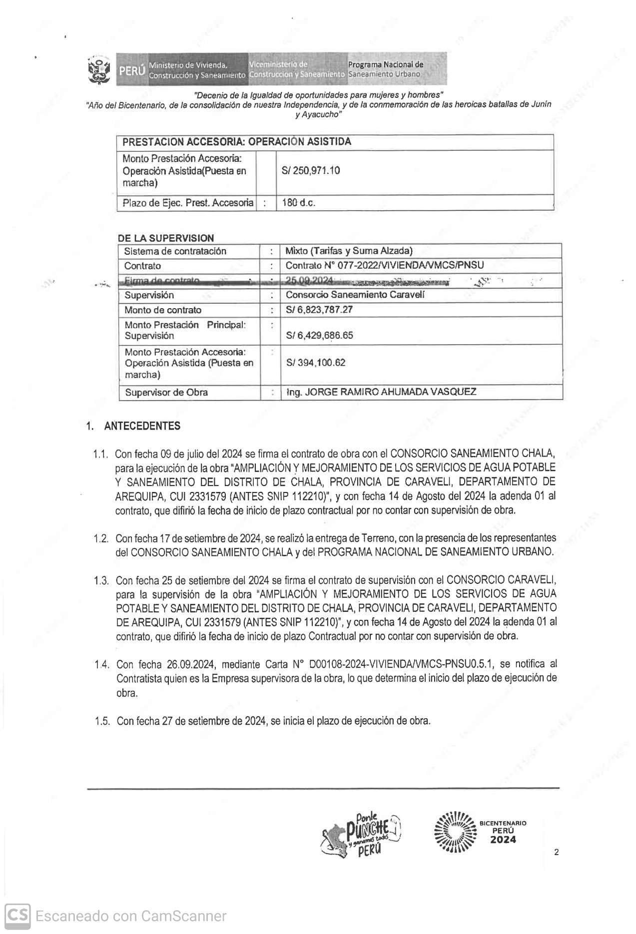 Empresa supervisora: Consorcio Saneamiento Caravelí.